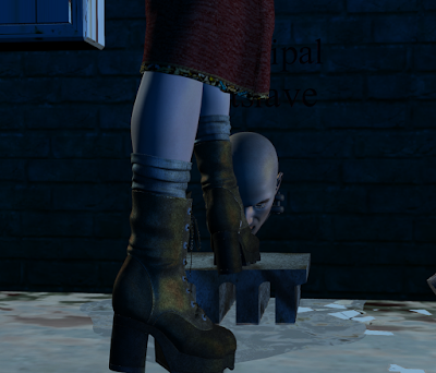 The young woman's boots certainly taste vile, but I can't help wondering what her socks inside them might taste like. Sweaty, I'm guessing?