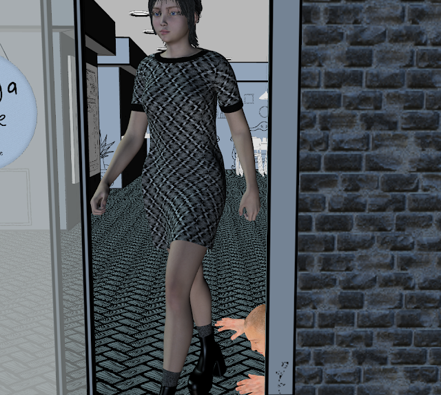 A pretty customer-mistress - in a pretty dress and with pretty boots and socks - walks confidently towards me on her way out of the cafe. She stops by my kneeling face, though only briefly of course, in order to have her feet kiss-respected by the cafe's complimentary feetgreeter-slave!