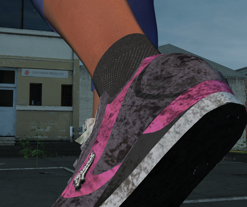She skillfully switches her sneakered feet in front of my face |