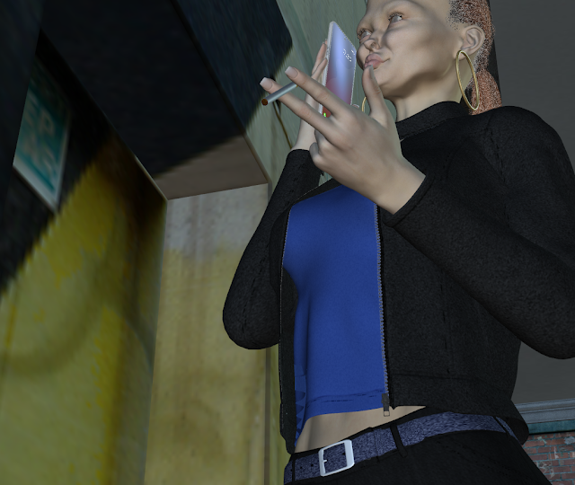 | ...still preoccupied with her phone... |