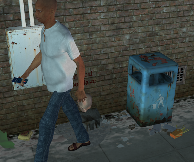 | I can also smell the mustiness of the customer-master's brown leather sandal straps... |