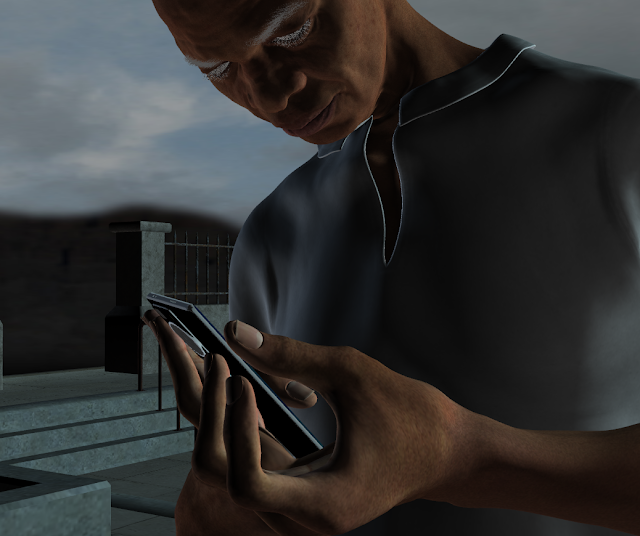 | Seemingly satisfied with my self-abasement at his feet, the master-sir turns his attention to the contents of his phone |