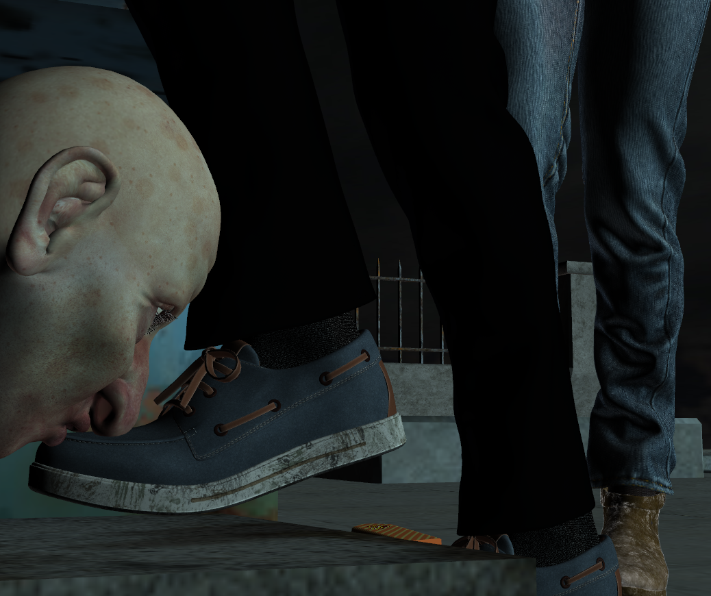 ‘Haha, that’s right sockieboy-slave! Kiss my hubby’s