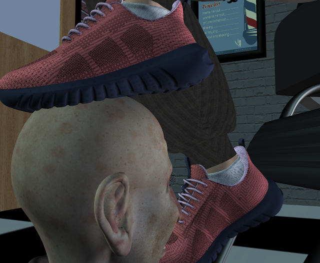 I’m just a convenient shoecleaner-cum-footrest for this superb customer-mistress whilst she catches up with her social media and her text messages on her phone. She cares little or nothing about my comfort or wellbeing at her feet. And rightly so, for I’m just a slave.