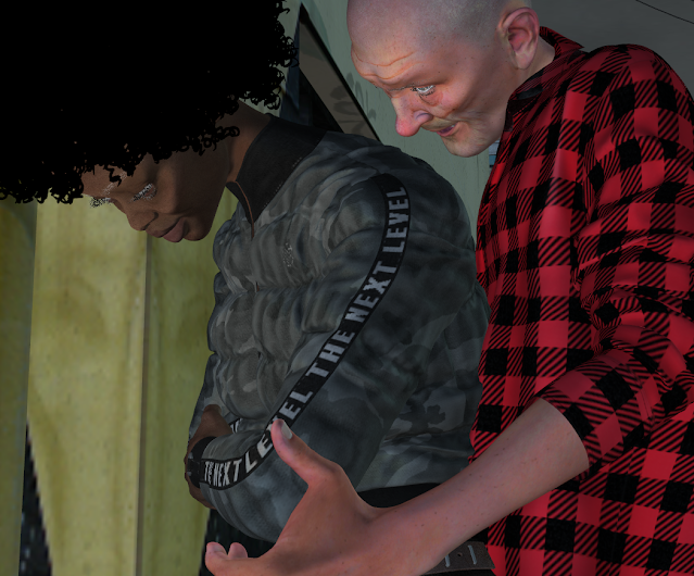 | ...if only because of the fabulous views he is getting of the man's girlfriend's SOCKS! |