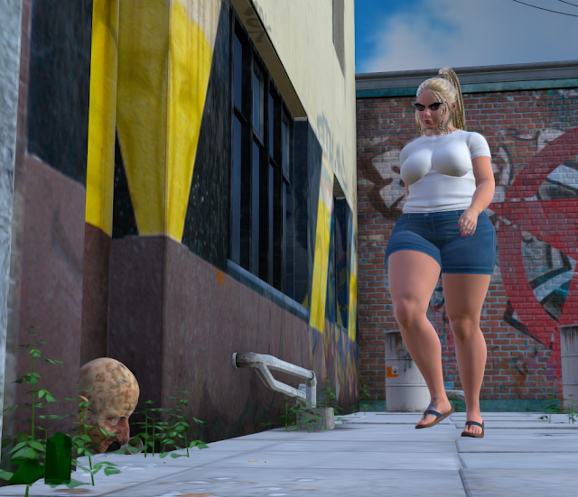 | Leaving me pondering my inferiority vis-a-vis her feminine FEET, TOES and SANDALS! |