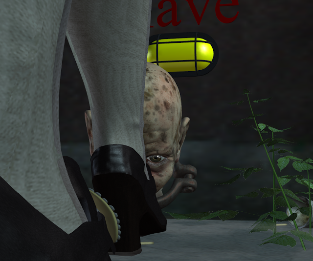 The slave kisses a serving wench's feet from a nearby hostelry. He recognises that the serving wench is his better, and thus fully deserving of his humble footkisses.
